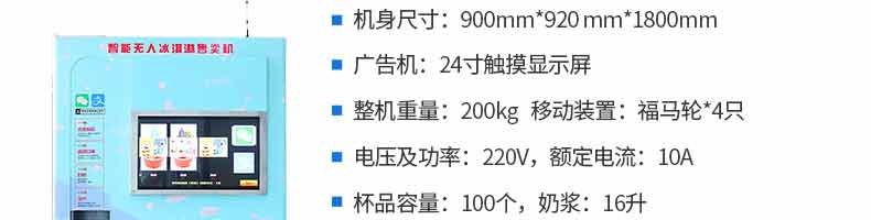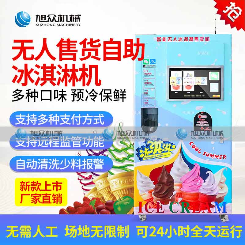 無人售貨冰淇淋機, 人工成本越來越高,無人店、無人售賣機必將是一個趨勢。簡單而又重復(fù)的勞動(售賣)必將被智能無人替代。無人售貨自助冰淇淋機支持多種支付方式,支持遠程監(jiān)管功能,支持預(yù)冷保鮮,支持多種口味混合,自動清洗少料報警。無需人工、場地無限制。