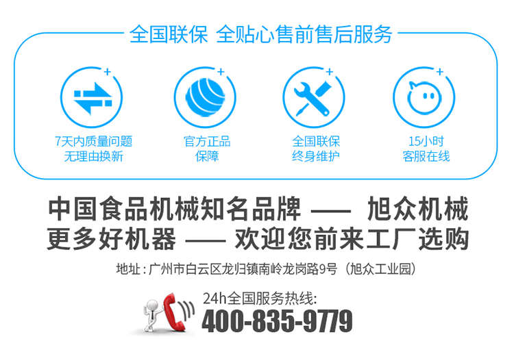 廣州旭眾食品機械有限公司是一家集科研開發(fā),生產(chǎn)設計,營銷服務為一體的現(xiàn)代化生產(chǎn)企業(yè)。現(xiàn)代化生產(chǎn)車間,精湛制造技術,所產(chǎn)機械歷經(jīng)市場重重考驗,不斷贏得海內(nèi)外客戶的贊譽。