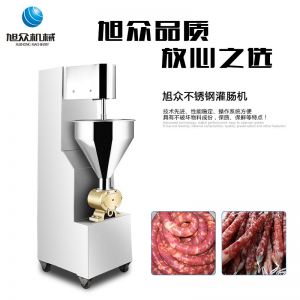 SZ-200灌腸機,適合灌制各種香腸、紅腸、臘腸及糊狀制品。本機使用敞開式不銹鋼料斗,適用于連續(xù)添加物料;與灌裝手接觸部件全部采用優(yōu)質(zhì)不銹鋼制作以防生銹;該機自動貨程度高,技術(shù)先進(jìn)、性能穩(wěn)定、操作簡便、工作效率高,具有不破壞物料成份,保質(zhì)、保鮮等特點。