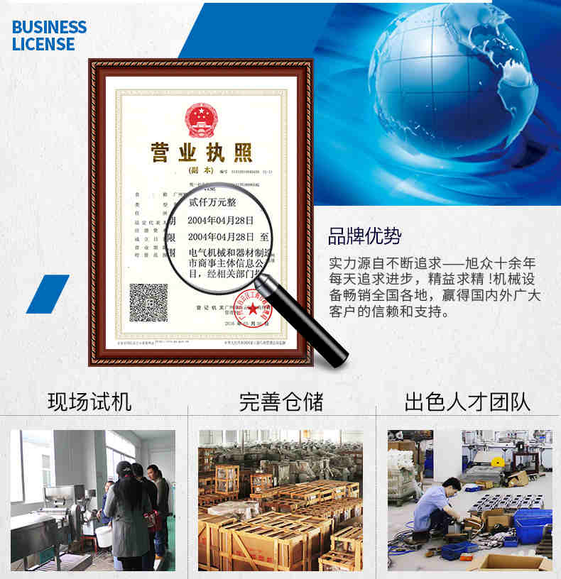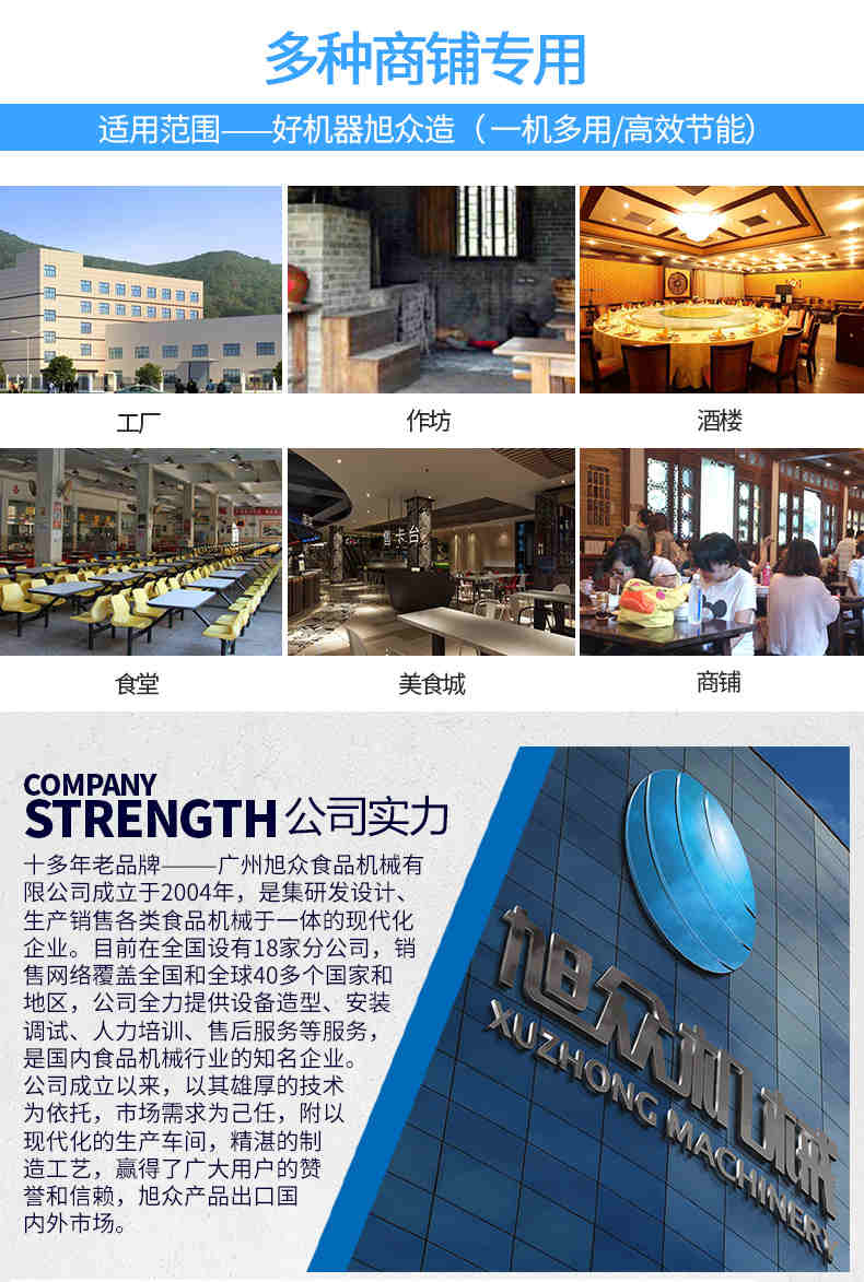 廣州旭眾食品機械有限公司是一家集科研開發(fā),生產設計,營銷服務為一體的現(xiàn)代化生產企業(yè)。現(xiàn)代化生產車間,精湛制造技術,所產機械歷經(jīng)市場重重考驗,不斷贏得海內外客戶的贊譽。