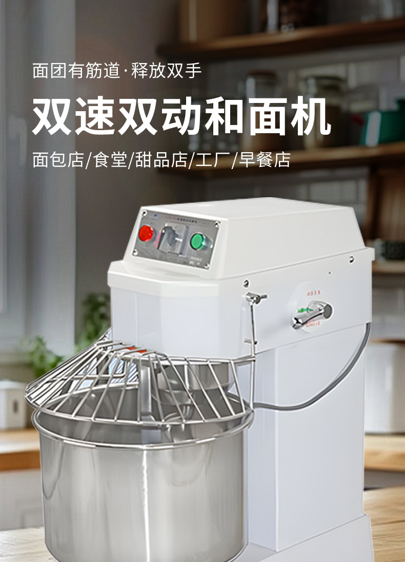 SZH-30型雙速雙動和面機,本機適合攪拌各種面包、包子、饅頭、湯圓、披薩餅面團,專業(yè)設計避免面團過分升溫并確保面團含氧量。過載、缺相保護裝置,防護罩安全連動裝置。