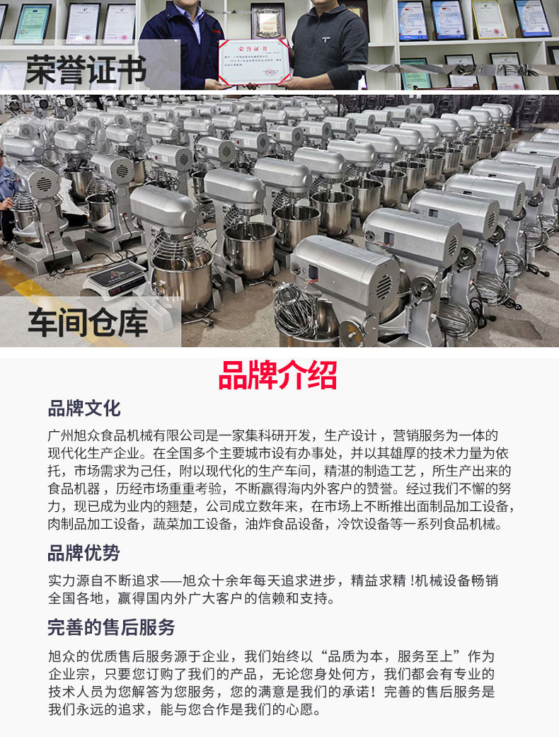 廣州旭眾食品機械有限公司是一家集科研開發(fā),生產(chǎn)設計,營銷服務為一體的現(xiàn)代化生產(chǎn)企業(yè)?,F(xiàn)代化生產(chǎn)車間,精湛制造技術,所產(chǎn)機械歷經(jīng)市場重重考驗,不斷贏得海內(nèi)外客戶的贊譽。