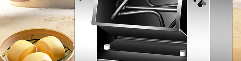低噪音和面機,利用攪拌器的轉(zhuǎn)動,使面粉和水在面斗中形成小顆粒,粘黏形成大面團塊。大容量翻轉(zhuǎn)面斗,采用優(yōu)質(zhì)不銹鋼焊接制造,防腐蝕,食品接觸安全,符合食品生產(chǎn)安全標準。