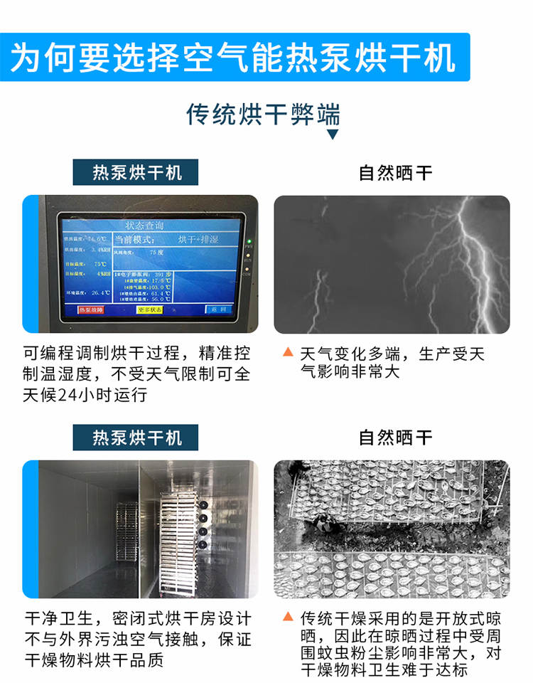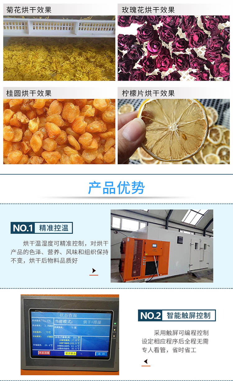 030S-T-KD06空氣能烘干機(jī),可編程調(diào)制烘干過(guò)程,精準(zhǔn)控制溫濕度,不受天氣限制可全天候24小時(shí)運(yùn)行。干凈衛(wèi)生,密閉式烘干房設(shè)計(jì)不與外界污濁空氣接觸,保證干燥物料烘干品質(zhì)。高效節(jié)能,不用專(zhuān)人看守,可實(shí)現(xiàn)一人同時(shí)管理多間烘房減少人工費(fèi)用