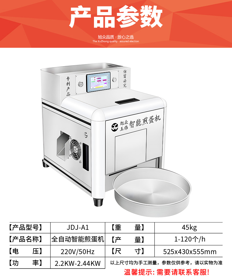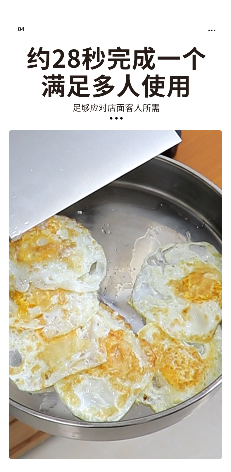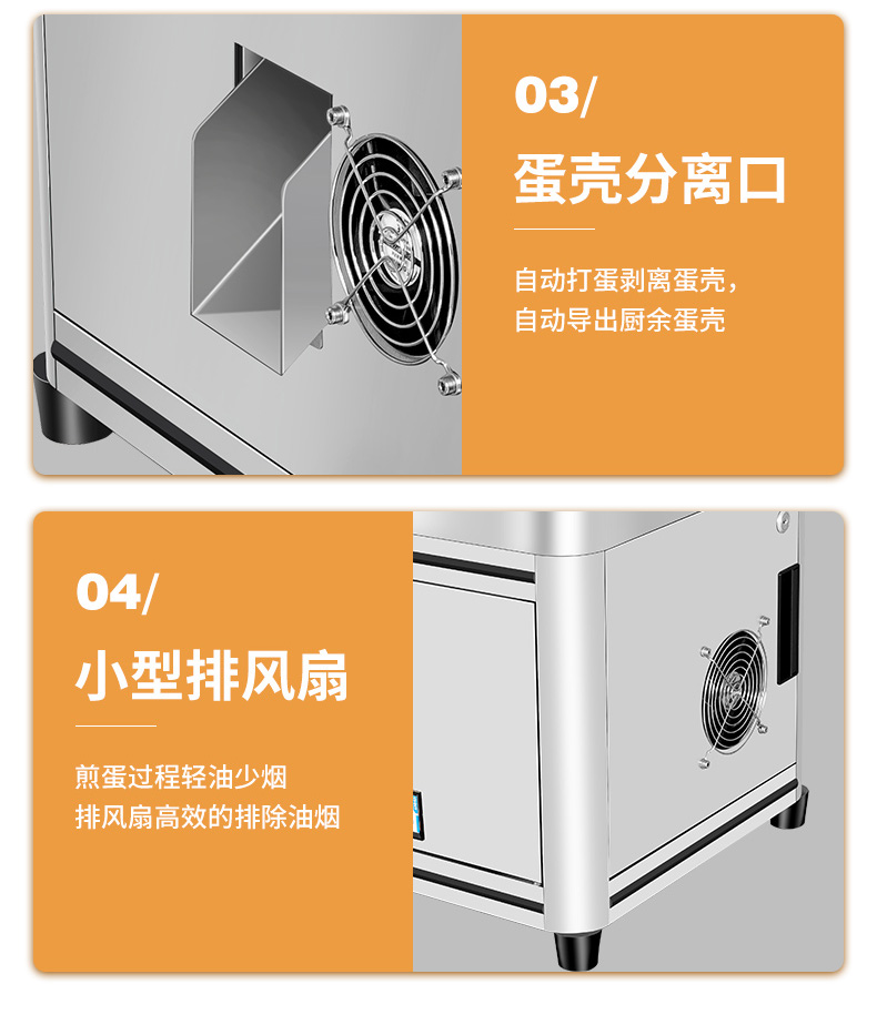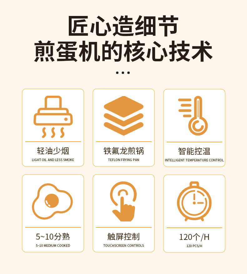 商用全自動(dòng)智能煎蛋機(jī),匠心造細(xì)節(jié)煎蛋機(jī)的核心技術(shù),輕油少煙、5~10分熟、鐵氟龍煎鍋、觸屏控制、智能控溫。口味個(gè)性化五分/七分/十分熟,智能控溫上下鍋恒溫煎烤。
