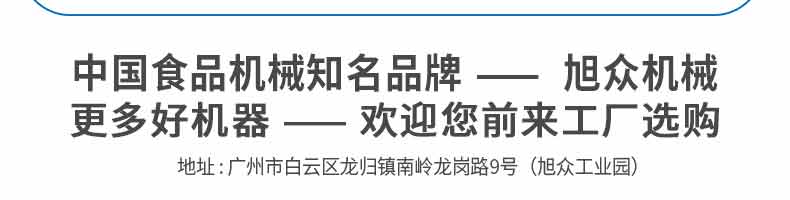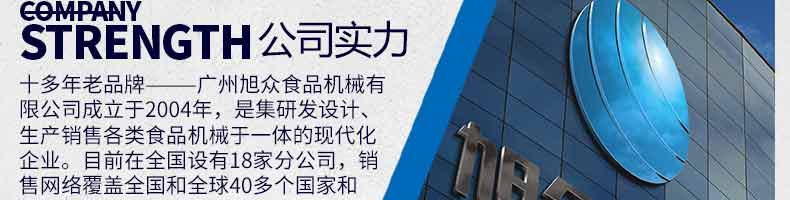 廣州旭眾食品機(jī)械有限公司是一家集科研開(kāi)發(fā),生產(chǎn)設(shè)計(jì),營(yíng)銷服務(wù)為一體的現(xiàn)代化生產(chǎn)企業(yè)。現(xiàn)代化生產(chǎn)車間,精湛制造技術(shù),所產(chǎn)機(jī)械歷經(jīng)市場(chǎng)重重考驗(yàn),不斷贏得海內(nèi)外客戶的贊譽(yù)。