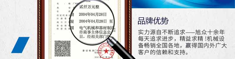 廣州旭眾食品機(jī)械有限公司是一家集科研開發(fā),生產(chǎn)設(shè)計(jì),營銷服務(wù)為一體的現(xiàn)代化生產(chǎn)企業(yè)?,F(xiàn)代化生產(chǎn)車間,精湛制造技術(shù),所產(chǎn)機(jī)械歷經(jīng)市場(chǎng)重重考驗(yàn),不斷贏得海內(nèi)外客戶的贊譽(yù)。