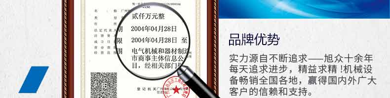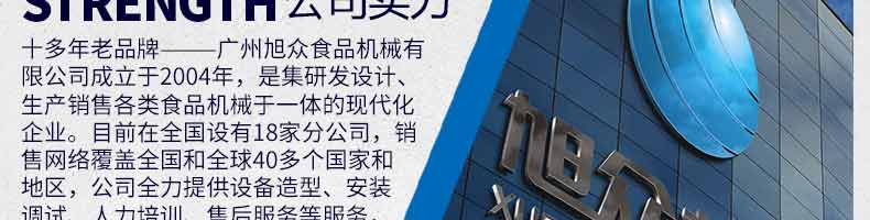 廣州旭眾食品機(jī)械有限公司是一家集科研開發(fā),生產(chǎn)設(shè)計(jì),營(yíng)銷服務(wù)為一體的現(xiàn)代化生產(chǎn)企業(yè)?,F(xiàn)代化生產(chǎn)車間,精湛制造技術(shù),所產(chǎn)機(jī)械歷經(jīng)市場(chǎng)重重考驗(yàn),不斷贏得海內(nèi)外客戶的贊譽(yù)。