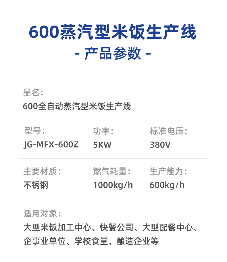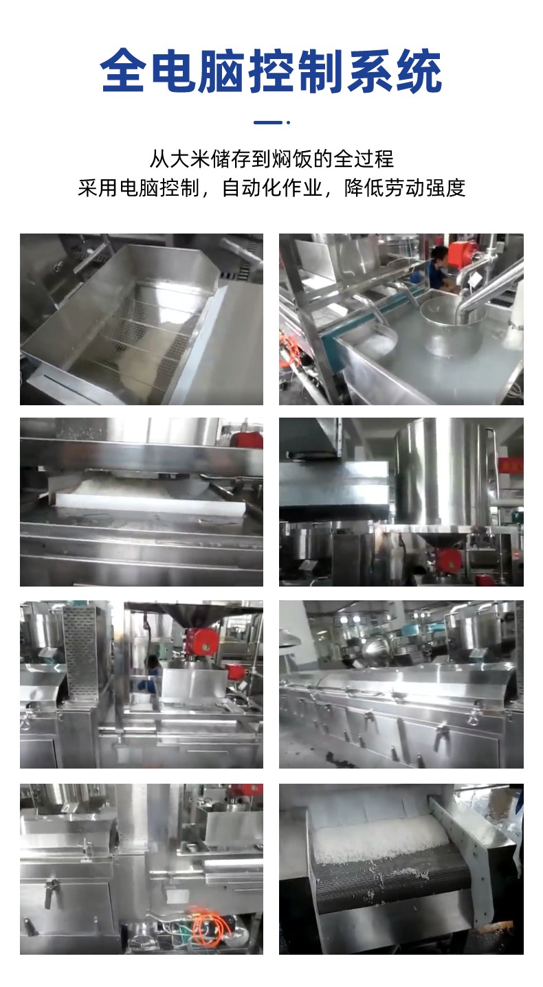 全自動(dòng)蒸汽型米飯生產(chǎn)線,全電腦控制系統(tǒng),從大米儲存到燜飯的全過程采用電腦控制,自動(dòng)化作業(yè),降低勞動(dòng)強(qiáng)度。實(shí)現(xiàn)全自動(dòng)生產(chǎn),多功能,一機(jī)多用,可以用于在蒸制各種食物實(shí)現(xiàn)全自動(dòng)生產(chǎn),無需人工服務(wù)。