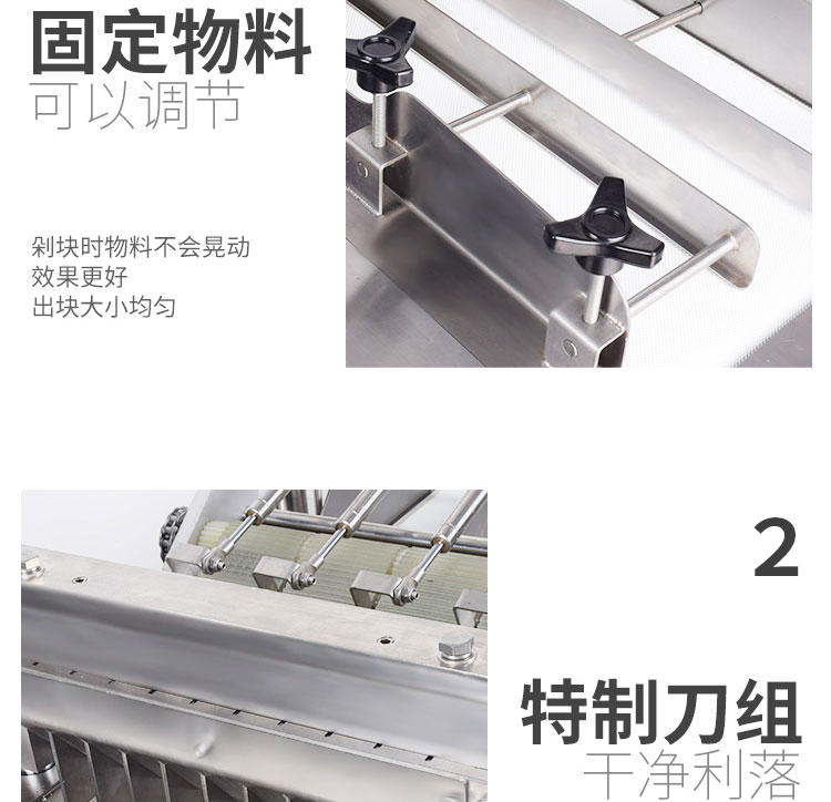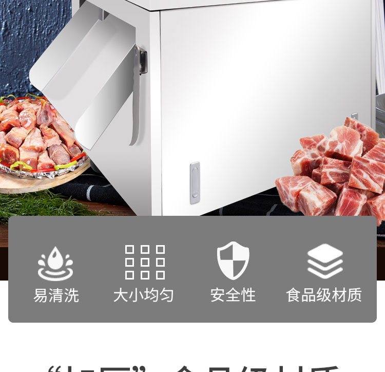 XZW-300魚(yú)禽類(lèi)剁塊機(jī),色禽類(lèi)剁塊機(jī)適合切凍肉帶骨/不帶骨?!凹雍瘛笔称芳?jí)材質(zhì)安全衛(wèi)生質(zhì)量保證。傳送帶推進(jìn)物料提高效率節(jié)省力氣。