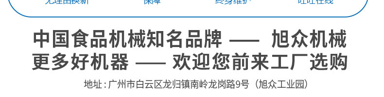 廣州旭眾食品機械有限公司是一家集科研開發(fā),生產(chǎn)設(shè)計,營銷服務(wù)為一體的現(xiàn)代化生產(chǎn)企業(yè)。現(xiàn)代化生產(chǎn)車間,精湛制造技術(shù),所產(chǎn)機械歷經(jīng)市場重重考驗,不斷贏得海內(nèi)外客戶的贊譽。