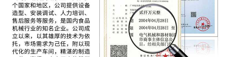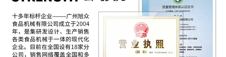 廣州旭眾食品機械有限公司是一家集科研開發(fā),生產(chǎn)設計,營銷服務為一體的現(xiàn)代化生產(chǎn)企業(yè)?,F(xiàn)代化生產(chǎn)車間,精湛制造技術,所產(chǎn)機械歷經(jīng)市場重重考驗,不斷贏得海內(nèi)外客戶的贊譽。