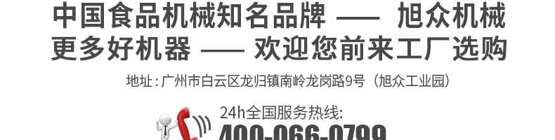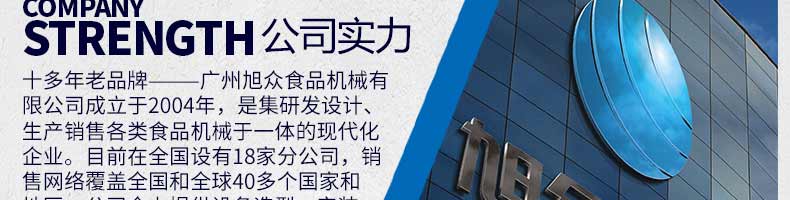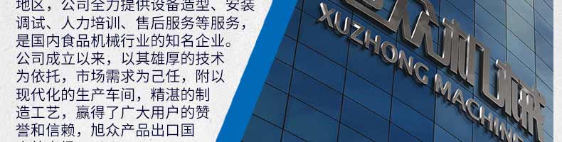 廣州旭眾食品機(jī)械有限公司是一家集科研開發(fā),生產(chǎn)設(shè)計(jì),營銷服務(wù)為一體的現(xiàn)代化生產(chǎn)企業(yè)?,F(xiàn)代化生產(chǎn)車間,精湛制造技術(shù),所產(chǎn)機(jī)械歷經(jīng)市場(chǎng)重重考驗(yàn),不斷贏得海內(nèi)外客戶的贊譽(yù)。