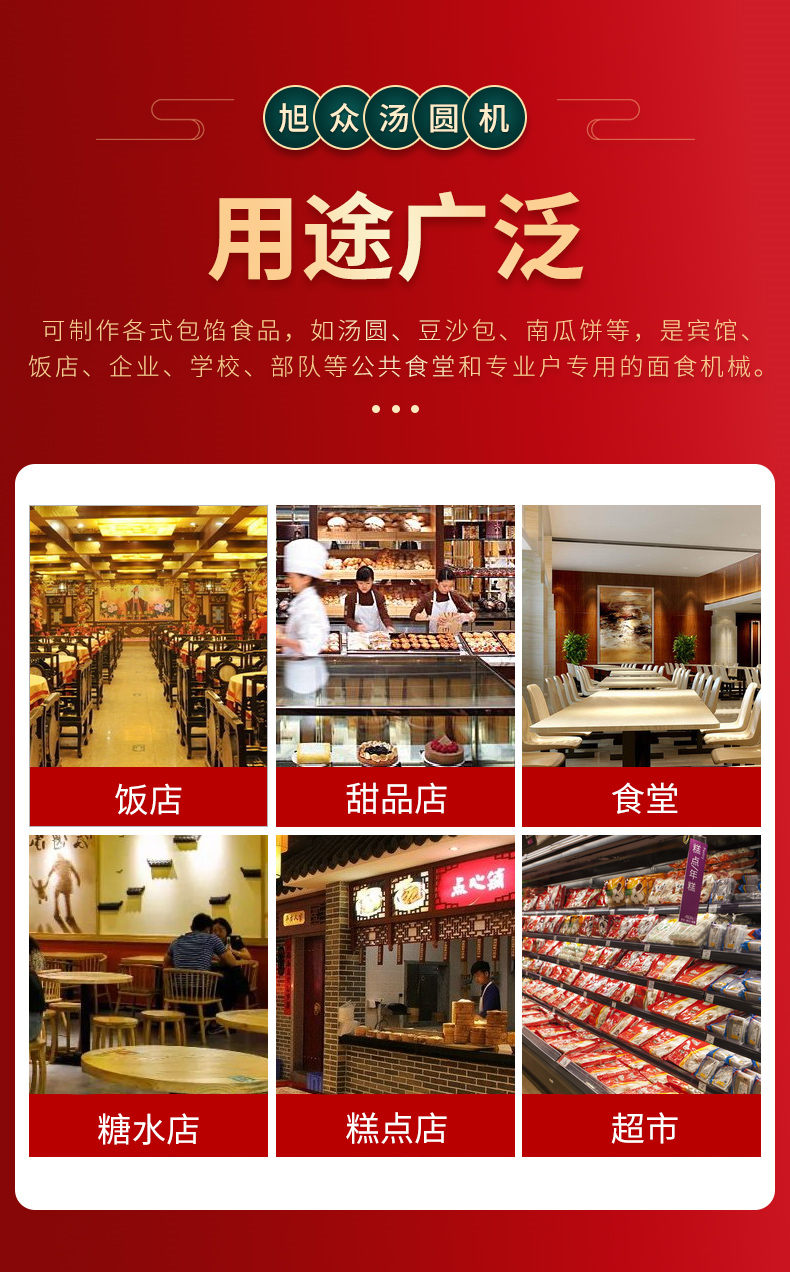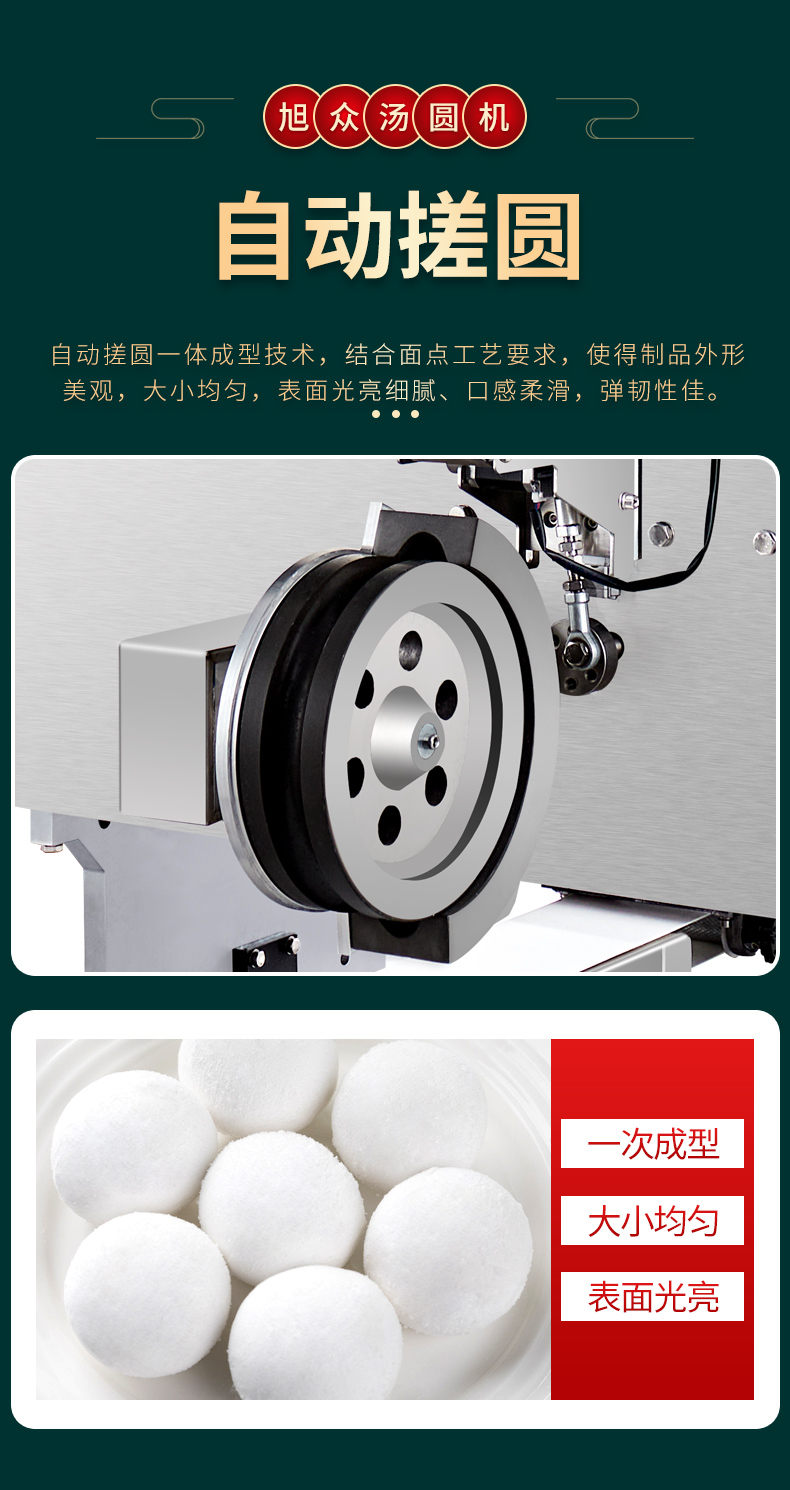 4000C湯圓機(jī),多功能湯圓機(jī),運(yùn)行穩(wěn)定、時(shí)產(chǎn)量高、大小可調(diào)。制品多樣性生產(chǎn)各種大小規(guī)格不同的有餡湯圓,無(wú)餡湯圓、豆沙包、南瓜餅,芝麻球,地瓜丸,香芋丸,葉兒粑,青團(tuán),粘豆包等。