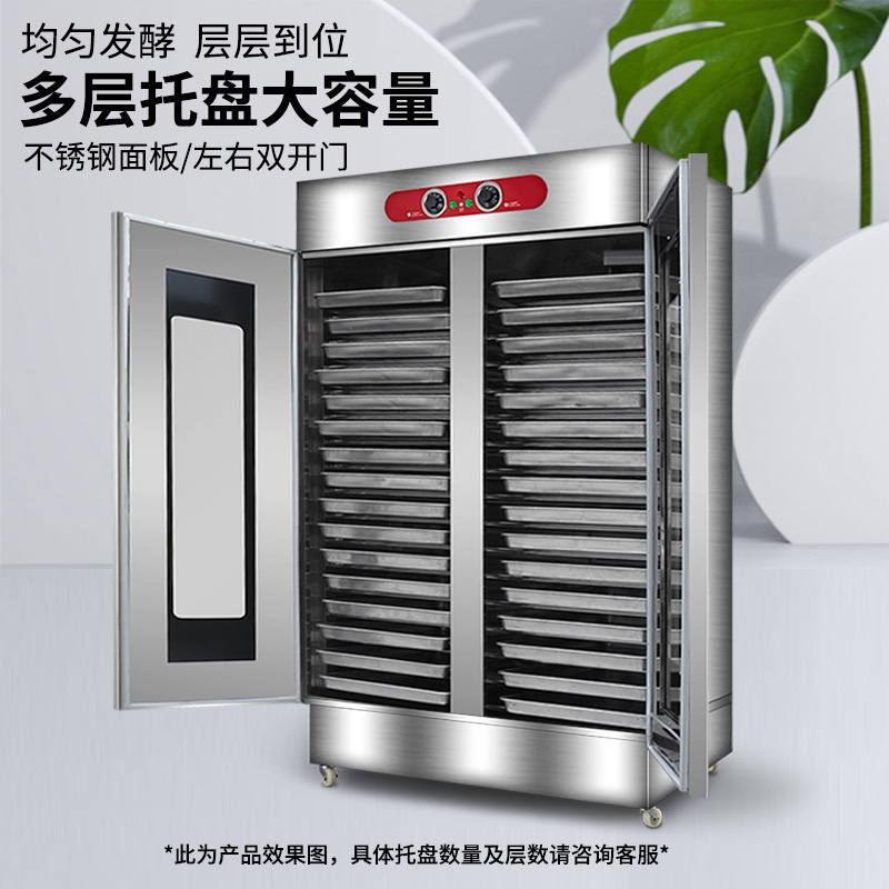 VF系列醒發(fā)箱,熱風循環(huán)、恒溫發(fā)酵。熱氣均勻分布,多盤發(fā)酵制作美味一樣到底。恒溫醒發(fā)箱完美解決利用電熱管,通過電子溫度控制電路,密封保濕循環(huán)發(fā)熱使箱內產生相對濕度為80-85%