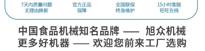 廣州旭眾食品機(jī)械有限公司是一家集科研開發(fā),生產(chǎn)設(shè)計,營銷服務(wù)為一體的現(xiàn)代化生產(chǎn)企業(yè)?,F(xiàn)代化生產(chǎn)車間,精湛制造技術(shù),所產(chǎn)機(jī)械歷經(jīng)市場重重考驗,不斷贏得海內(nèi)外客戶的贊譽(yù)。